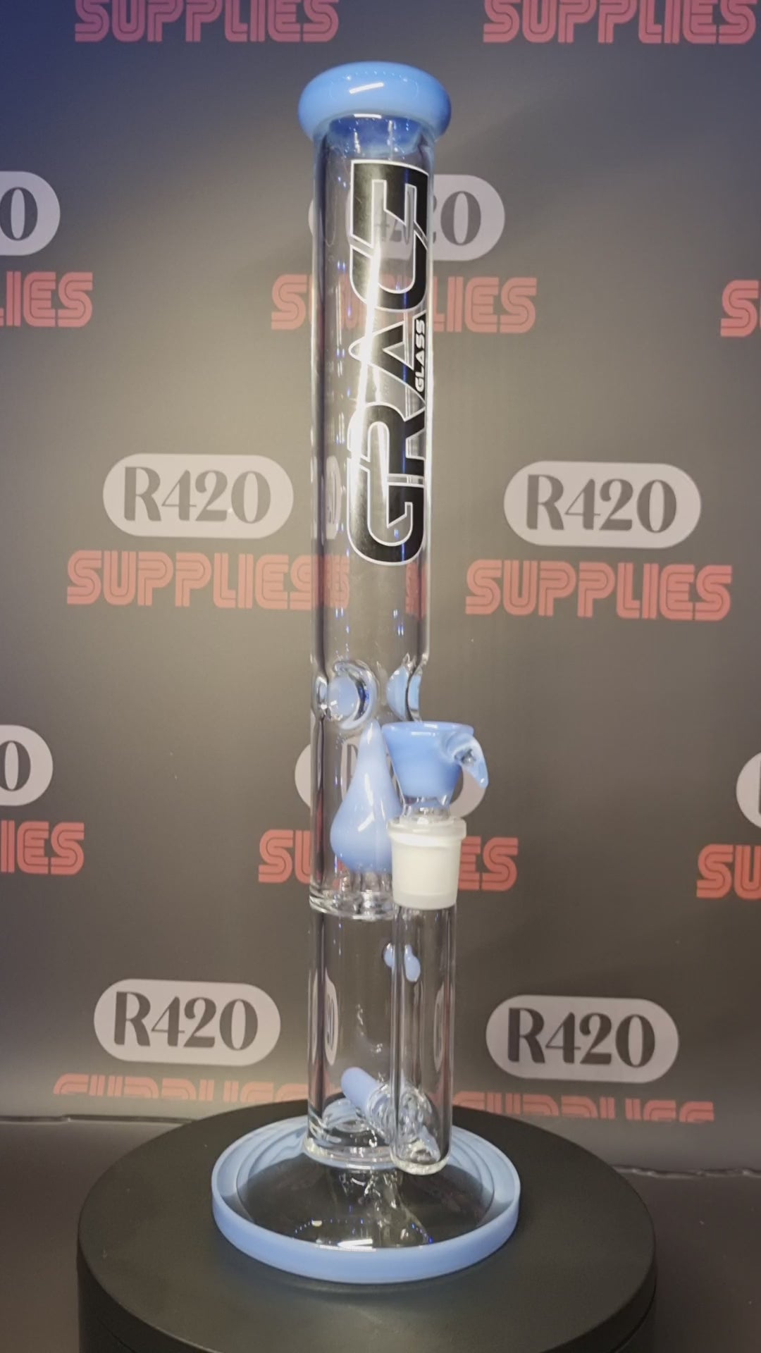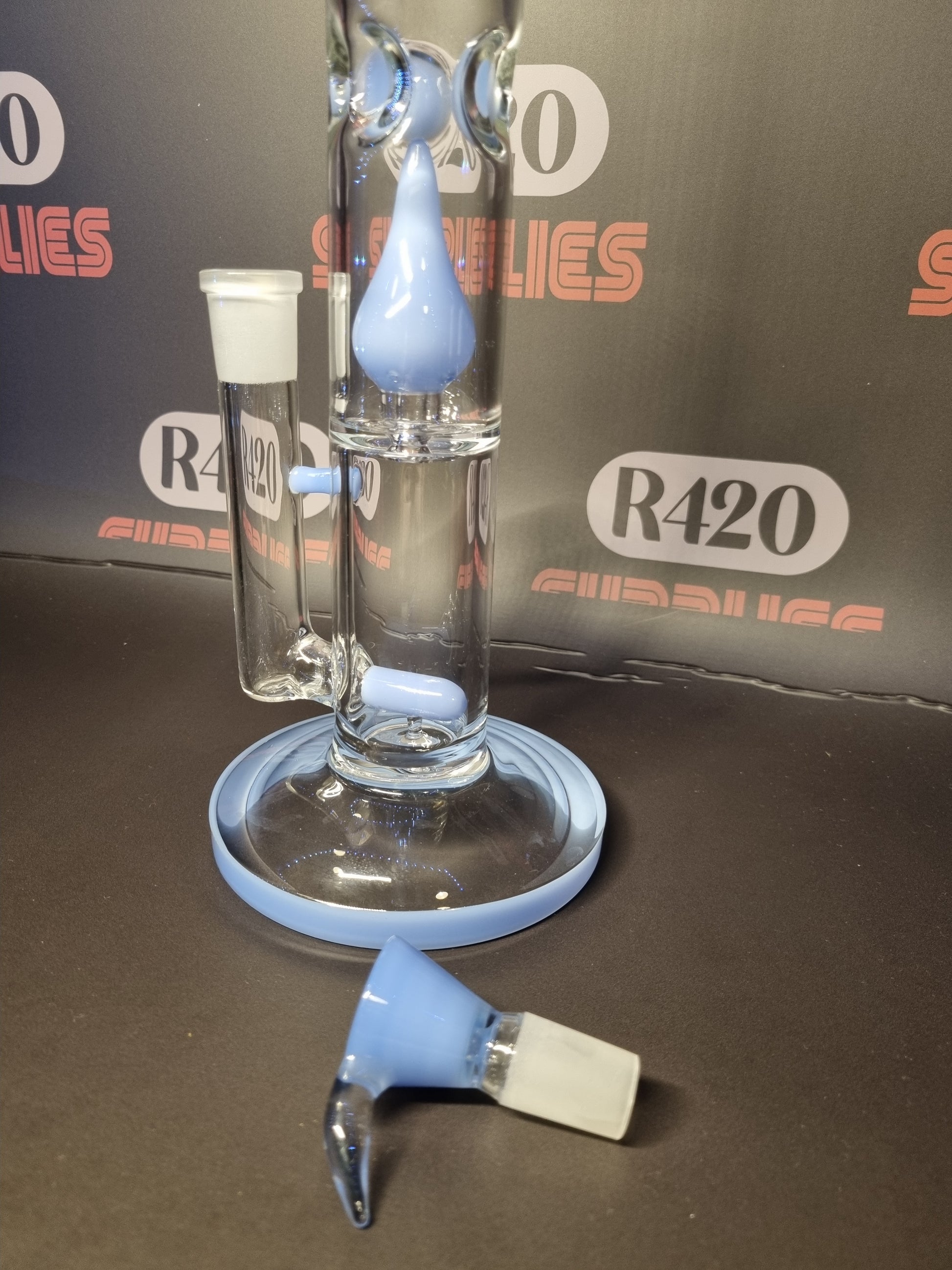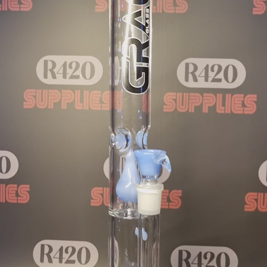 The Blue Barrel Bong by Grace Glass is elegant and robust, standing 41cm tall with a 18cm socket and 5mm thick glass. Ideal for those who appreciate a smoother, cooler smoking experience.