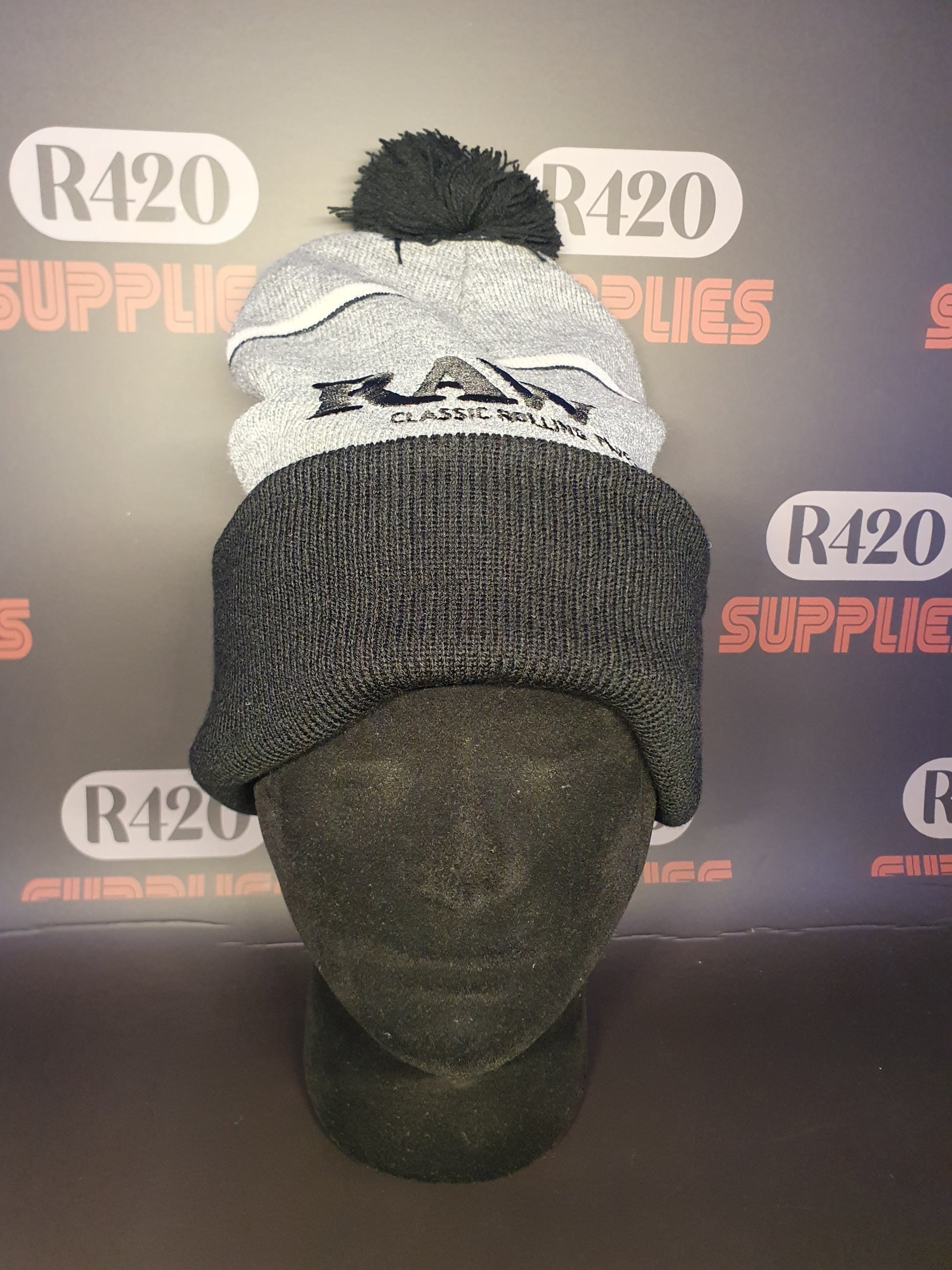 RAW X Rolling Papers Winter Knit Hat - Black & Grey
